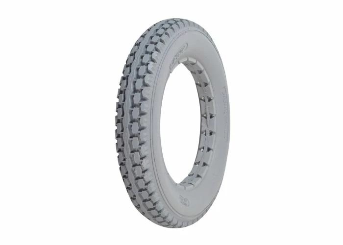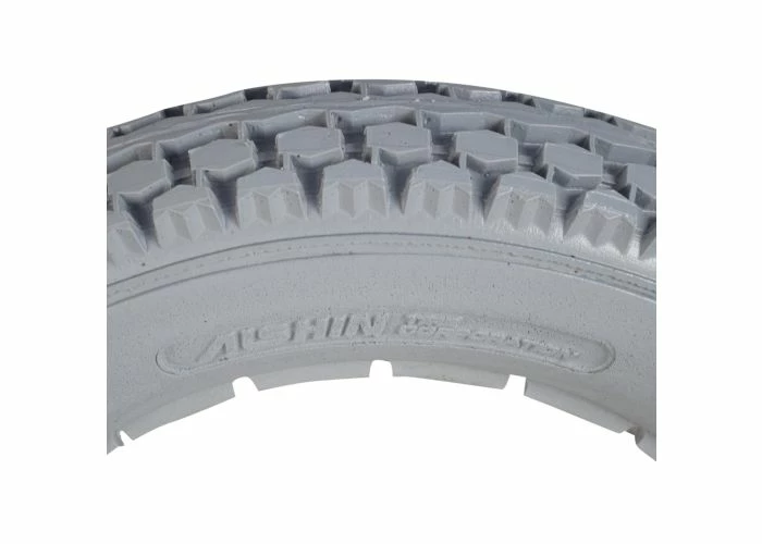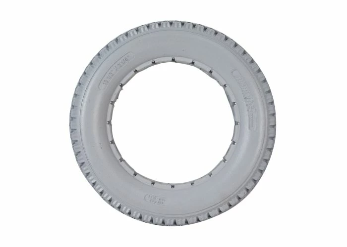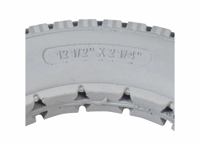 The 12-1/2″x2-1/4″ light gray solid urethane mobility tire has a great knobby tread that is suitable for both indoor and outdoor use