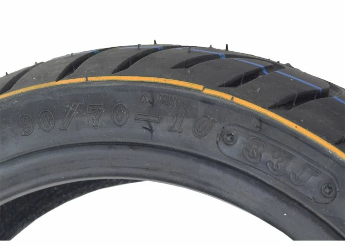 The 90/70-10 tubeless tire for eWheels EW-36 and EW-36 Elite scooters may be mounted on either the front or the rear rims