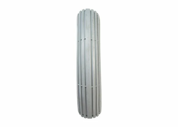 This tire is typically used as the front tire for mobility scooters, and is constructed of non-marking rubber.