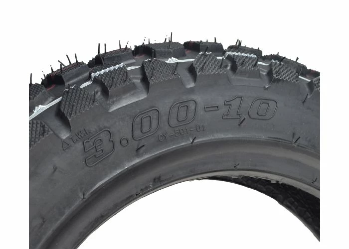 Big wheel recreational style mobility scooters are becoming more popular as they combine the function of a traditional 3-wheel electric scooter with the aesthetic design of a 2-wheel street-legal motor scooter. Upgrading your scooter with a knobby dual sport style 3.00-10 tire is a great option that will enhance your scooter’s visual appeal as well as providing additional traction on hard surfaces or loose surfaces.