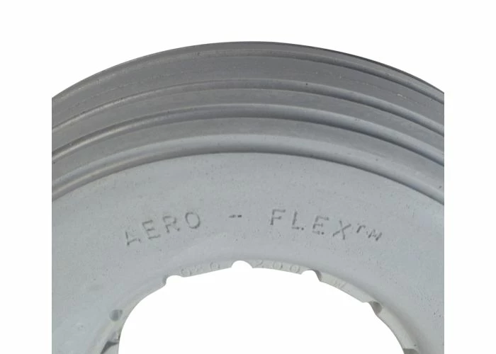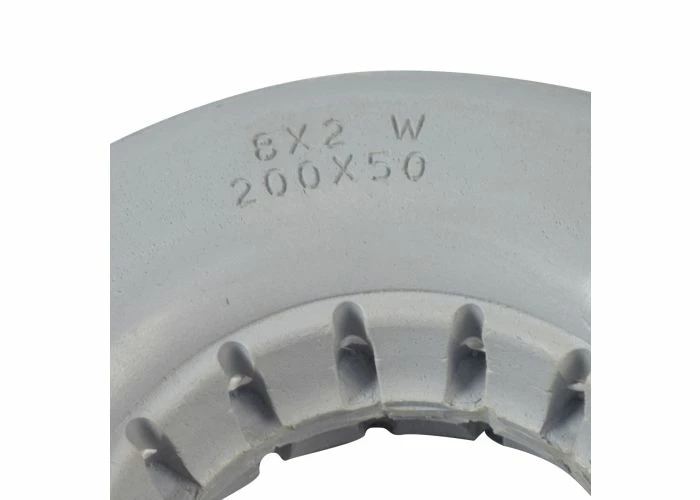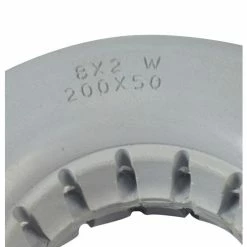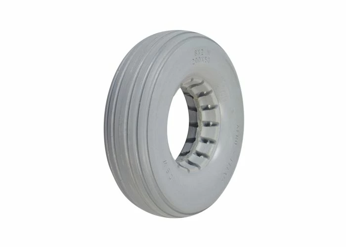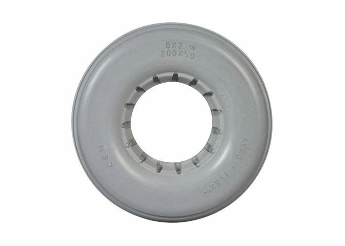 Perfect for indoor or outdoor use, the 8″x2-1/4″ light gray solid urethane mobility tire with ribbed tread is dependable and flat-free