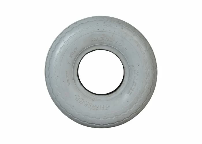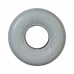 Note: This is a pneumatic front tire that requires an inner tube. In addition, Shoprider uses a different tread on their 4.00-5 (13″x4″, 330×100) Pneumatic Rear Tire for better traction with the scooter’s drive wheels.